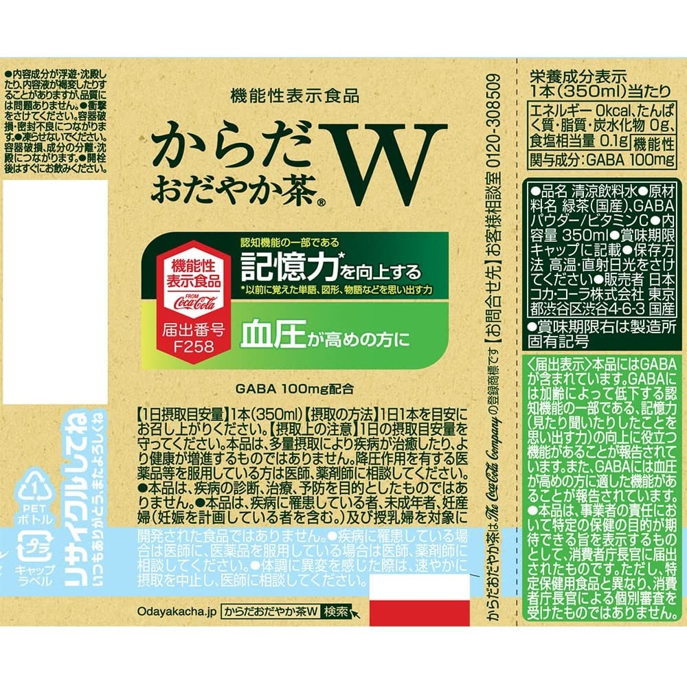 【送料無料】からだおだやか茶W 350m lペットボトル 24本(24本×1ケース) コカコーラ 【メーカー直送・代金引換不可・キャンセル不可】