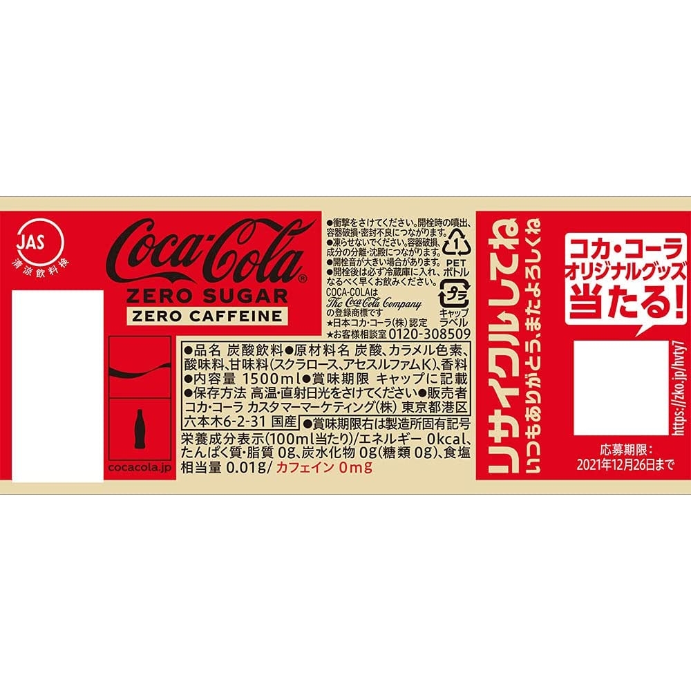 【送料無料】コカ・コーラ ゼロカフェイン 1.5L ペットボトル 6本(6本×1ケース) コカコーラ 【メーカー直送・代金引換不可・キャンセル不可】