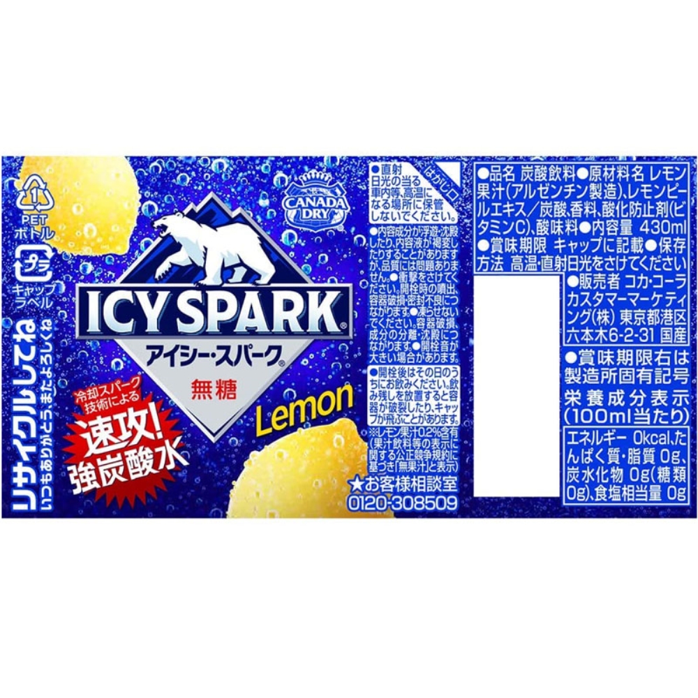 【送料無料】アイシー・スパーク フロム カナダドライ レモン 430ml ペットボトル 24本(24本×1ケース) コカコーラ 【メーカー直送・代金引換不可・キャンセル不可】