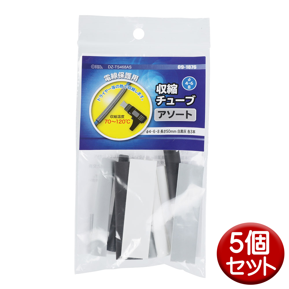【メール便送料無料】収縮チューブ φ4・φ6・φ8mm 長さ50mm アソート9個入×5個セット OHM 09-1876 DZ-TS468AS-5P
