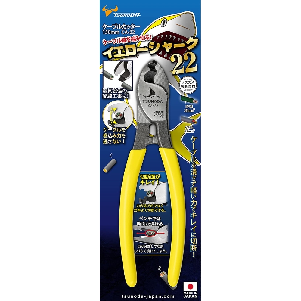 ツノダ イエローシャーク22 ケーブルカッター 全長162mm DIY 工具 ツール CA-22 【メール便送料無料】