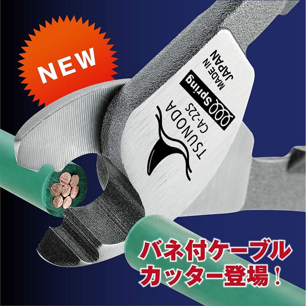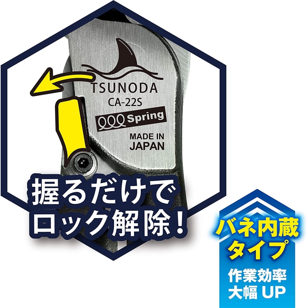 ツノダ イエローシャーク22 バネ付ケーブルカッター 全長162mm DIY 工具 ツール CA-22S 【メール便送料無料】
