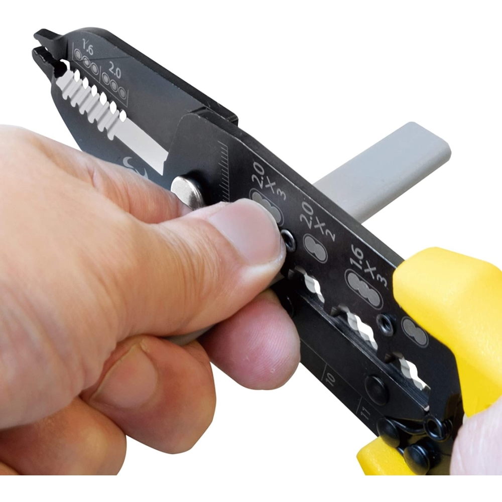・ストリップ補助バネ付で握りを緩めるとバネの反発力で芯線を傷付けにくい適性位置まで刃が開くため、はじめての方でも素早くキレイにストリップ可能です。