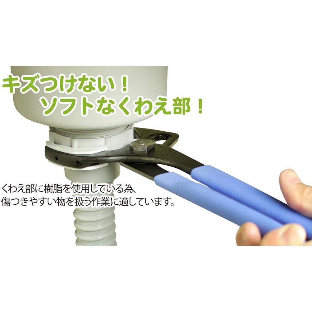 ・くわえ部に樹脂を使用しているため、プラスチックやステンレス、真鍮、メッキ製品など傷つきやすいものを扱う作業に適しています。