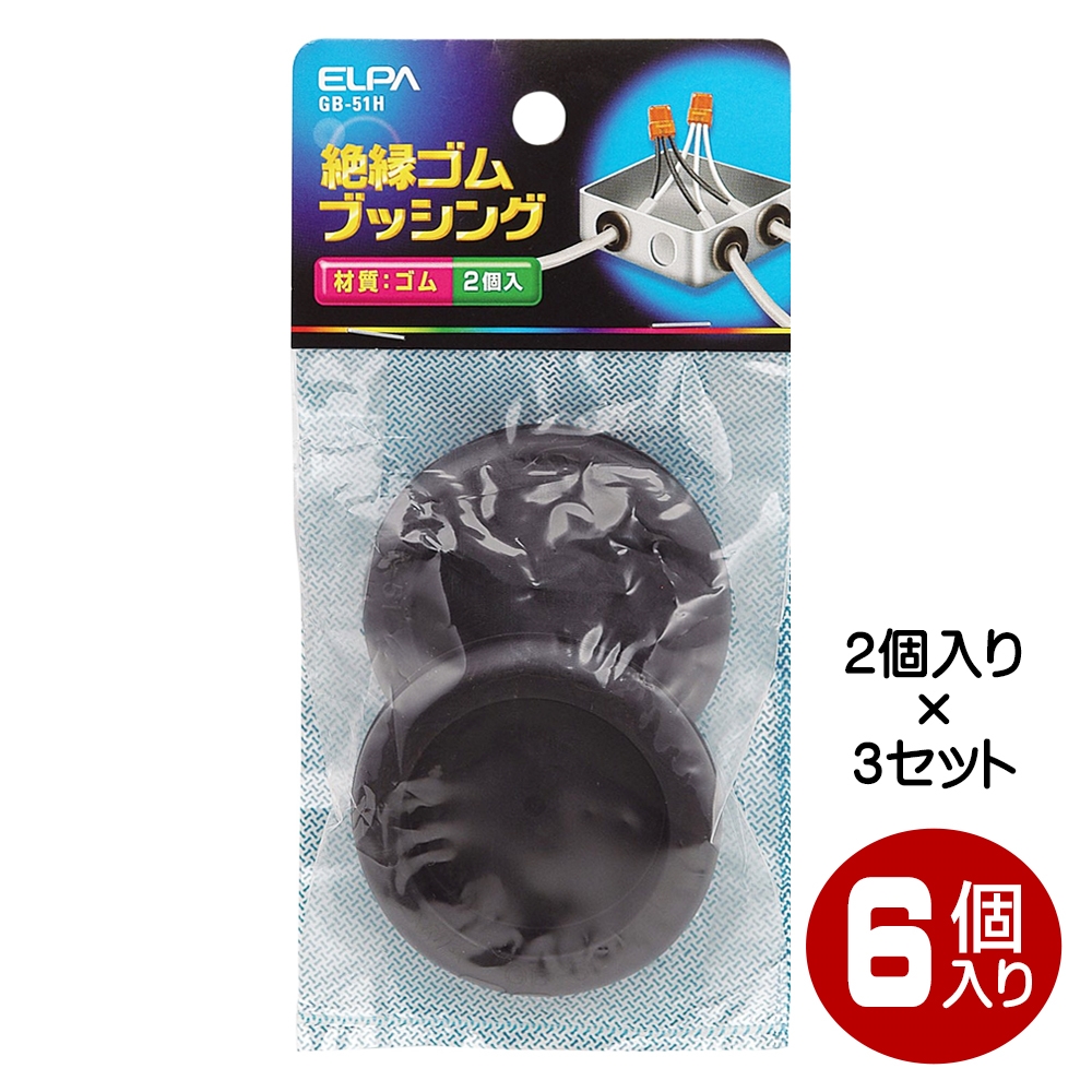 【メール便送料無料】ELPA ゴムブッシング 51mm 6個入(2個×3) GB-51H-3P