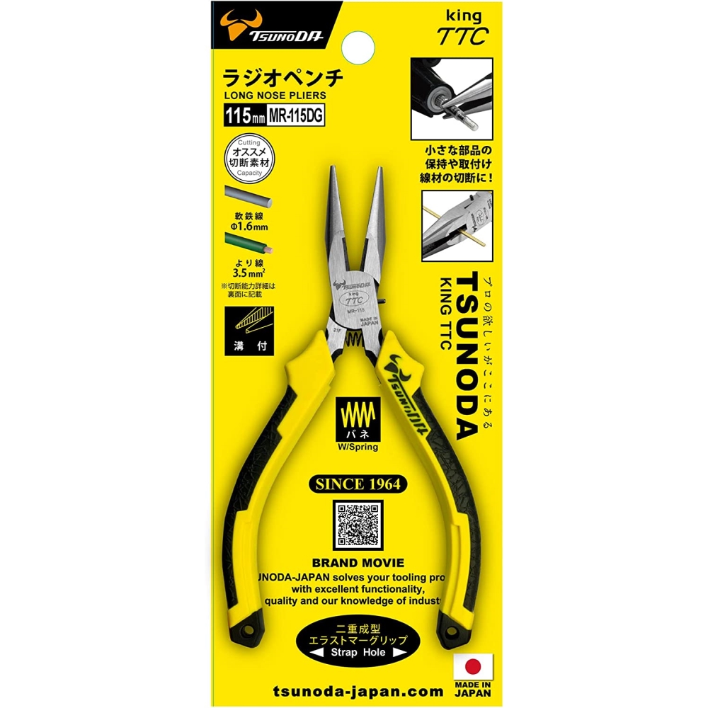 ツノダ ラジオペンチ 115mm 成型グリップ DIY 工具 ツール MR-115DG 【メール便送料無料】