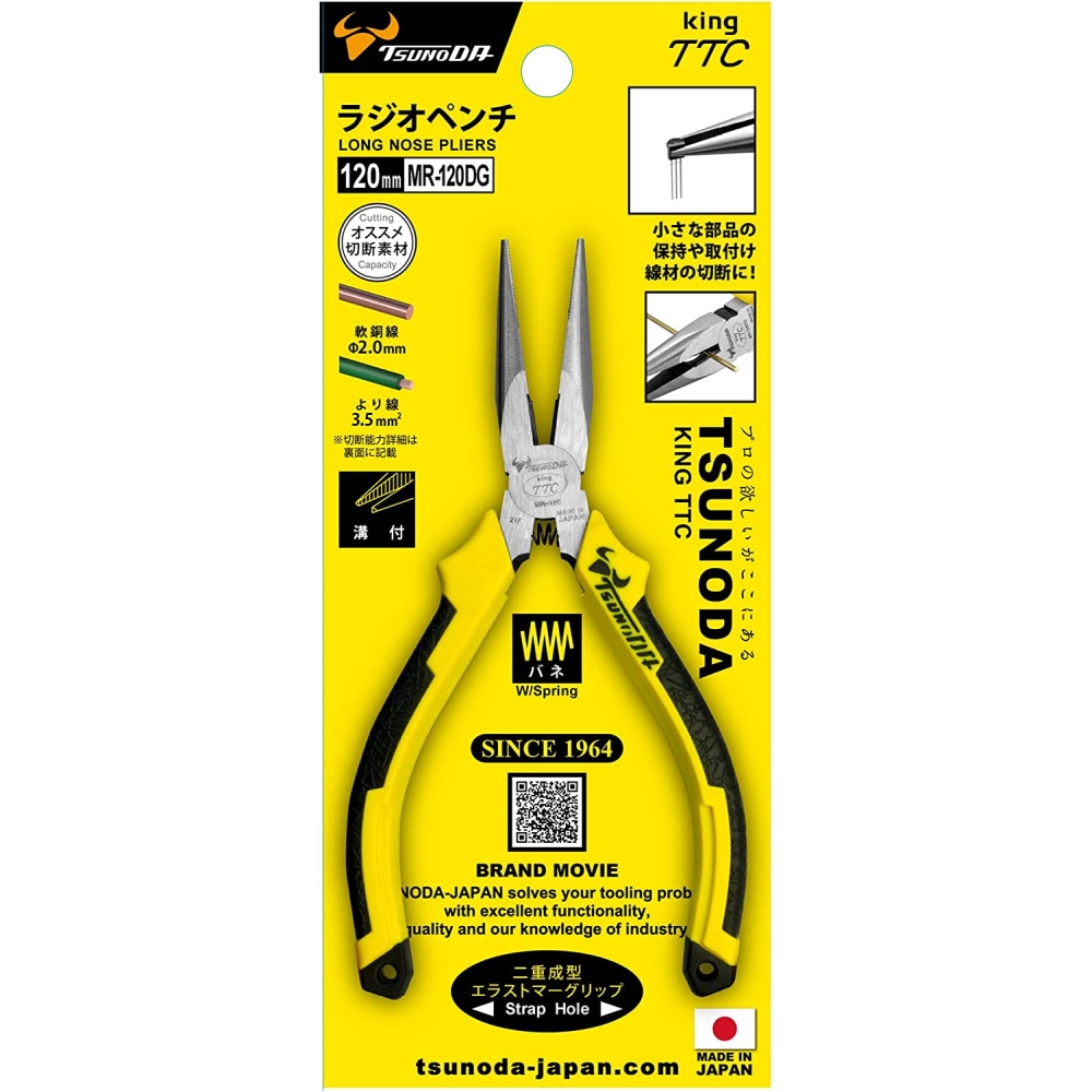 ツノダ ラジオペンチ 120mm 成型グリップ DIY 工具 ツール MR-120DG 【メール便送料無料】