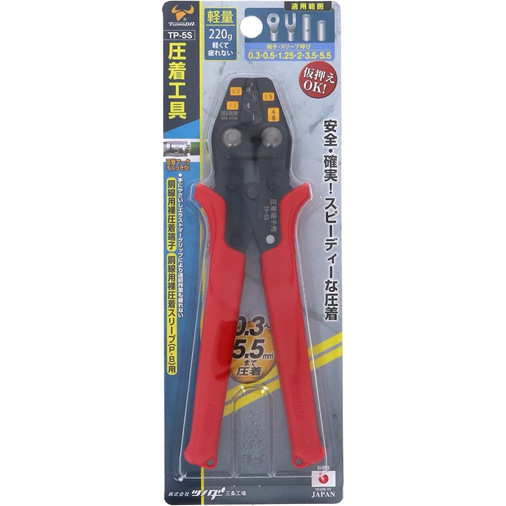 ツノダ 圧着工具 裸圧着端子・裸圧着スリーブ 0.3/0.5/1.25/2./3.5/5.5mm DIY 工具 ツール2 TP-5S 【メール便送料無料】