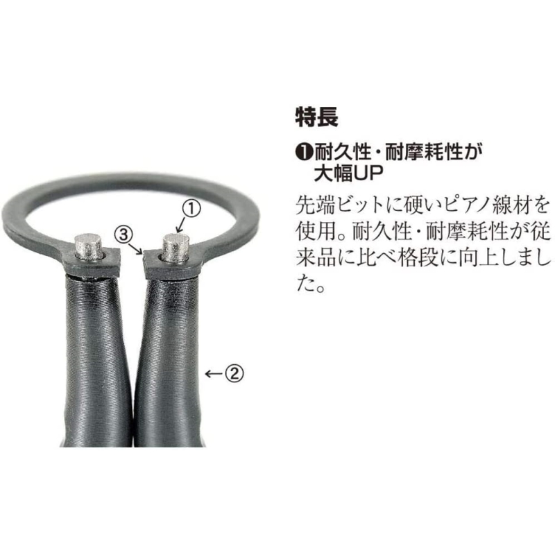 ■先端に硬いピアノ線ビットを使用。高い耐久性と耐磨耗性を実現しました。