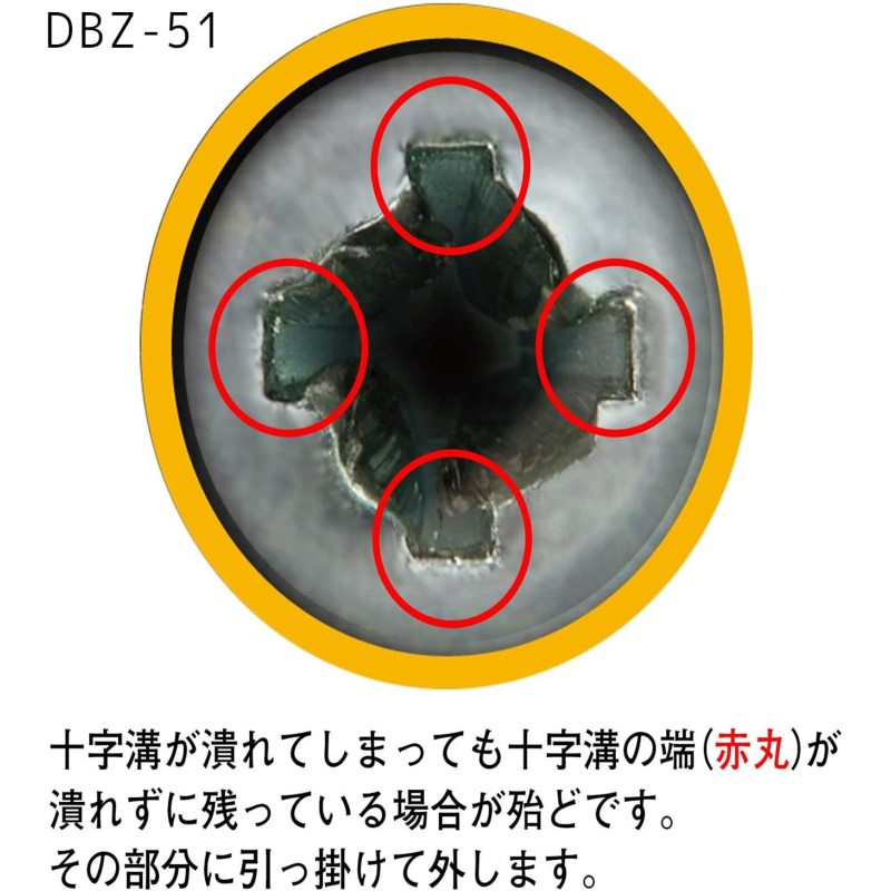 ■軽症用ビット(品番:DBZ-51)は潰れたネジを叩かずに外せます。