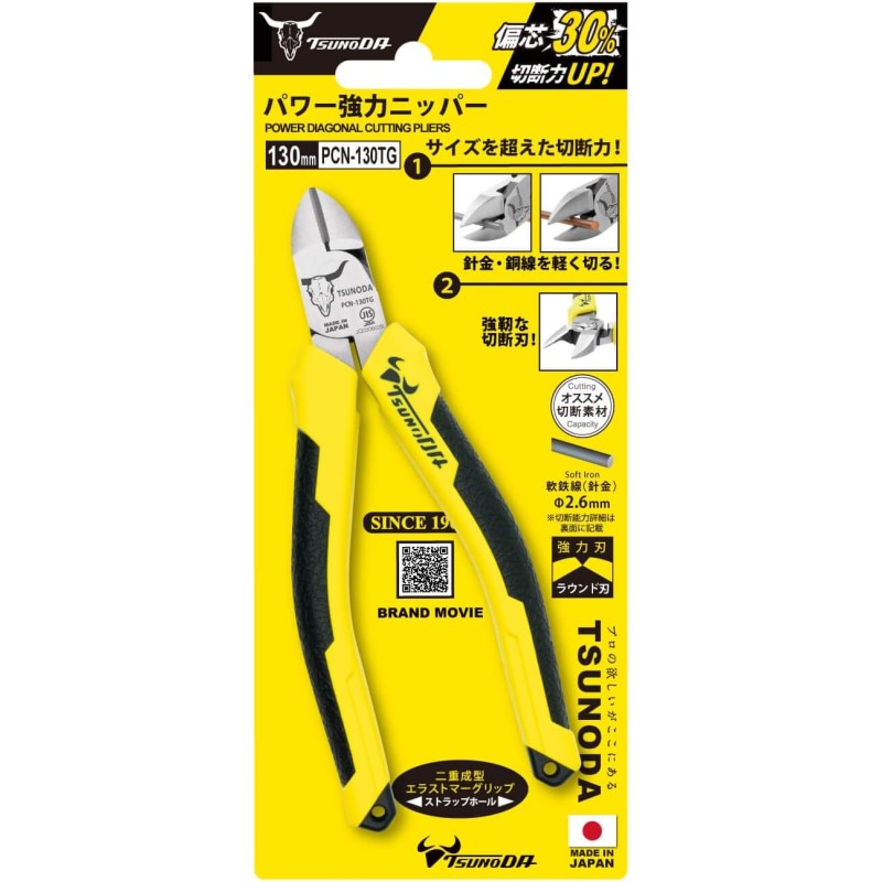 ツノダ パワー強力ニッパー 130mm エラストマーグリップ DIY 工具 ツール PCN-130TG メール便送料無料