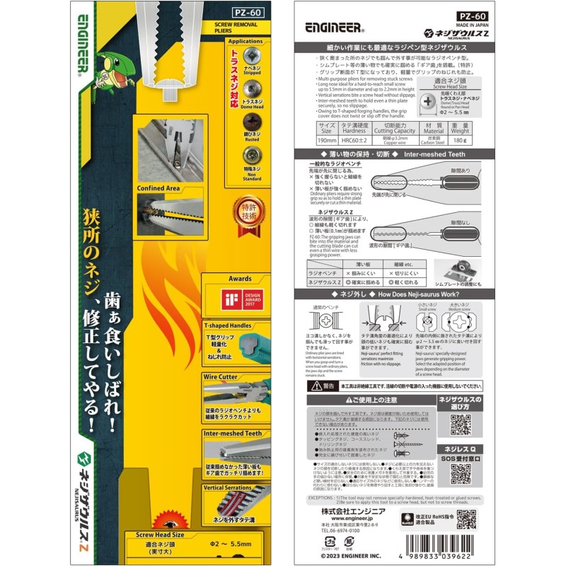 エンジニア ネジザウルスZ 潰れたネジはずし用 ラジオペンチ ネジ頭径2〜5.5mm対応 PZ-60 メール便送料無料