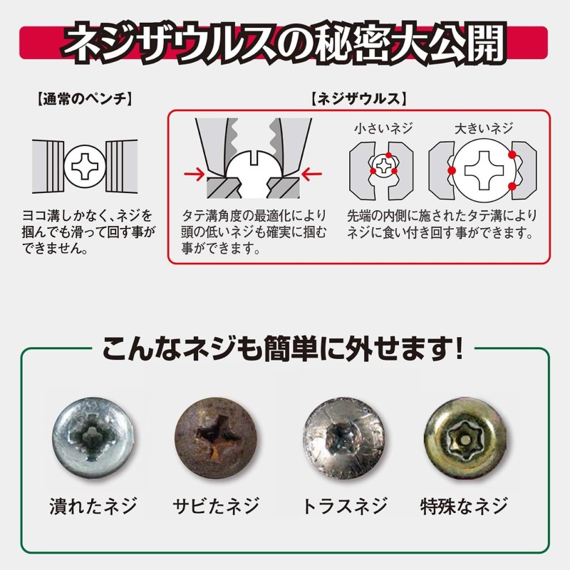 ■独自の先端形状により、頭の低いネジ(トラスネジ)にも対応。