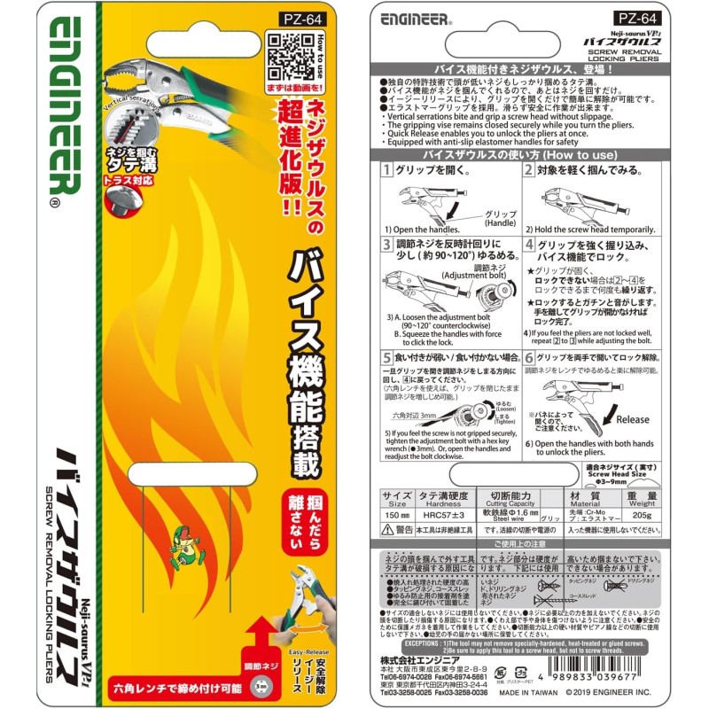 エンジニア ネジザウルスVP-1 潰れたネジはずし用 バイス ネジ頭径3〜9.5mm対応 PZ-64 メール便送料無料