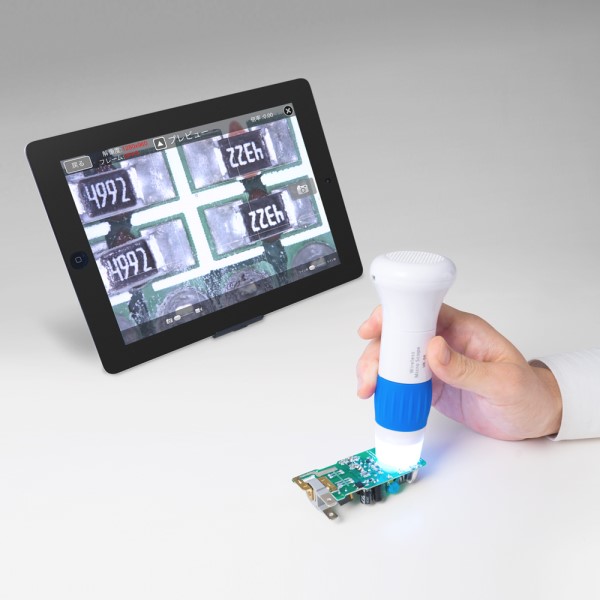 ・スマホやタブレットとワイヤレス接続し、映像をリアルタイムにモニタリングできるコンパクトなデジタル顕微鏡です。