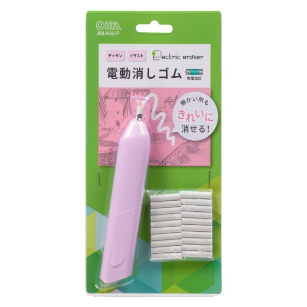 OHM 電動消しゴム 乾電池式 大 ピンク JIM-K02-P