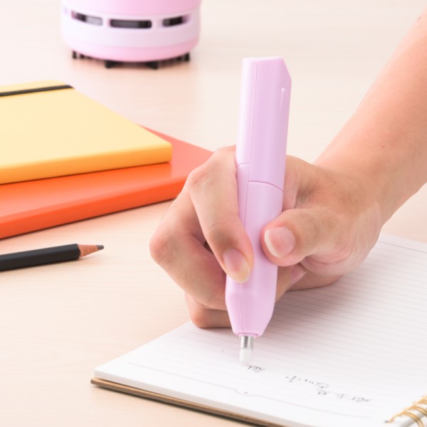 ・細かい所もきれいに消せる、乾電池式の電動消しゴムです。