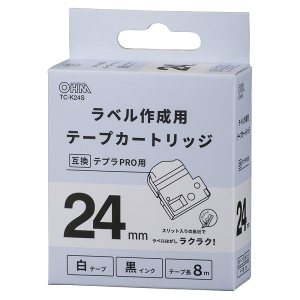 【メール便送料無料】OHM テプラ互換ラベル 白テープ 黒文字 幅24mm 01-3805 TC-K24S
