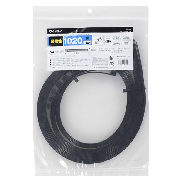 【メール便送料無料】耐候性ワイドタイ 1020mm 黒 10本入リ ケーブル・コード止め 屋内外用 OHM 09-1771 WLT-1020-K10P
