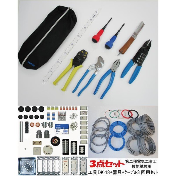 ■第二種電気工事士技能試験に必要な「工具」・「器具」・「ケーブル」を一括購入できるセットです。
