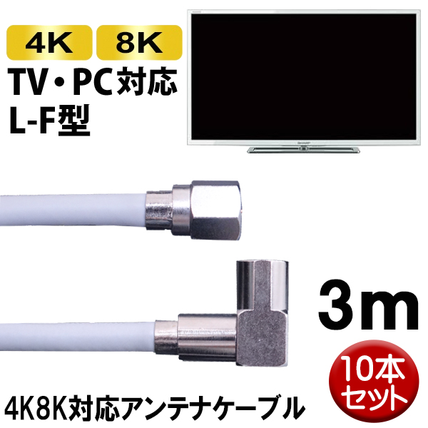 【送料無料】4K/8K対応 S4CFBアンテナケーブル 10本セット 3m L-F型 ライトグレー 4C同軸ケーブル SED S4LF-3H-10P 【返品保証】