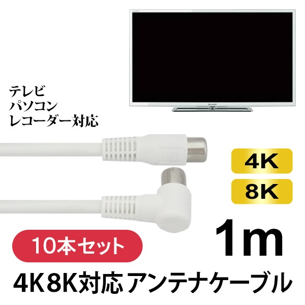 【送料無料】4K/8K対応 S4CFB アンテナケーブル 1m 10本セット ホワイト 4K対応 同軸ケーブル SED GHC-SL1M-10P 【業者様向け】【返品保証】 地上デジタル BS CS対応 テレビケーブル アンテナコード TVケーブル