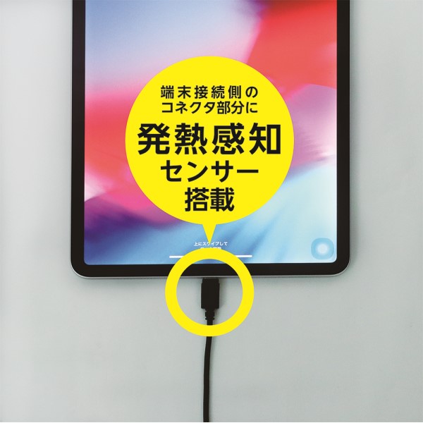 ・端末接続側コネクタ部分に発熱感知センサー搭載し、まさかの事故を未然に防ぐUSBType-Cケーブルです。