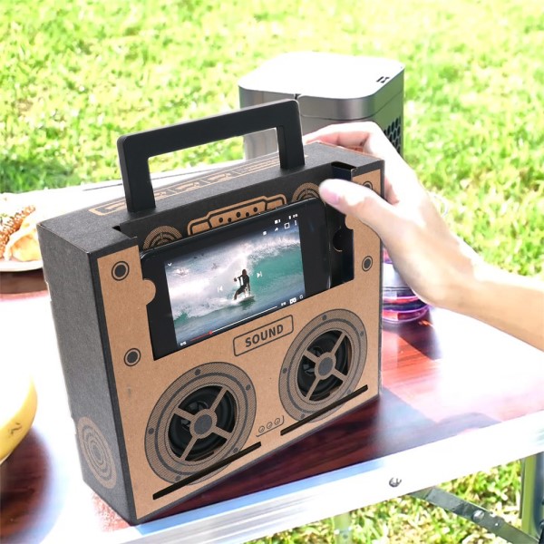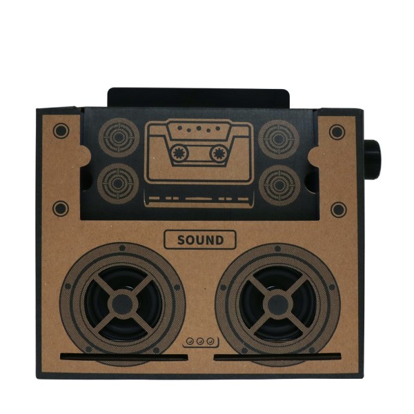 ・本体には軽量でエコな紙素材を採用。また、本物のラジカセのような取っ手付きのデザインで、持ち運びもラクラクです。