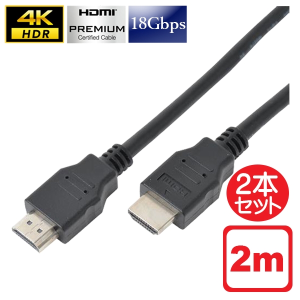 【メール便送料無料】プレミアムHDMIケーブル 2m 2本セット 18Gbps 4KHDR対応 ソリッド CDL-PHDMIE20B PS5・PS4 Pro・XBOX X対応 HDMI ver.2.0