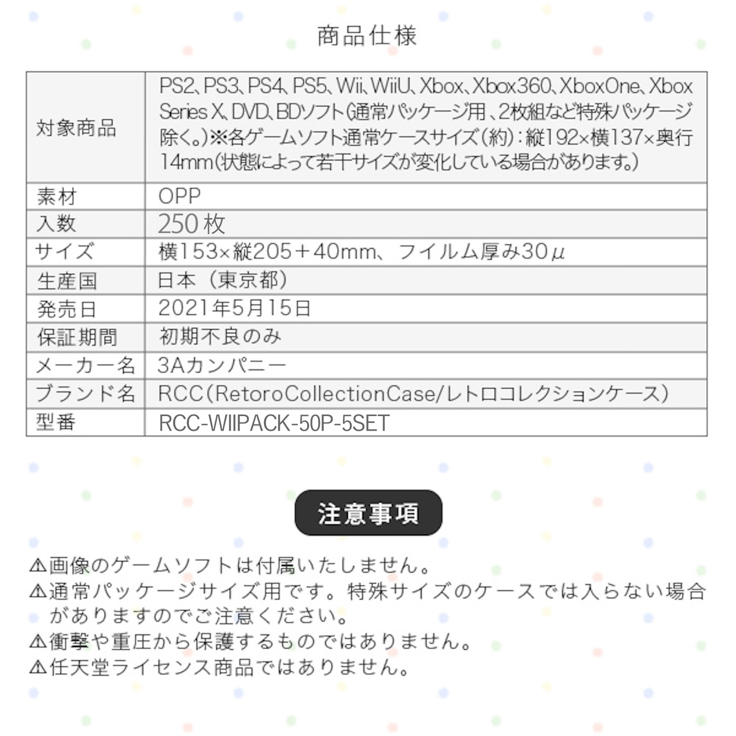 【メール便送料無料】PS2-PS5用保護クリアパック 250枚入り 日本製 高品質OPP袋 3Aカンパニー RCC-WIIPACK-50P-5SET PS2/PS3/PS4/PS5/Wii/WiiU/XBOXケース