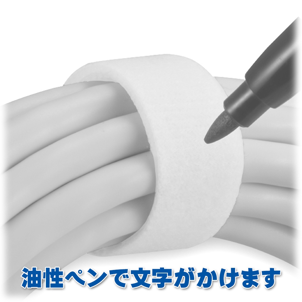 【メール便送料無料】マジックタイ 1本 幅10mm×長さ150cm ホワイト OHM 09-1995 DZ-MT10150W 結束バンド マジックテープ ケーブルまとめ