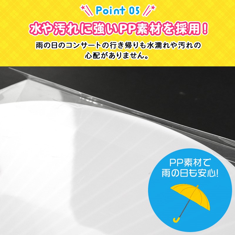 5.水や汚れに強いPP素材を採用!雨の日のコンサートの行き帰りも水濡れや汚れの心配がありません。