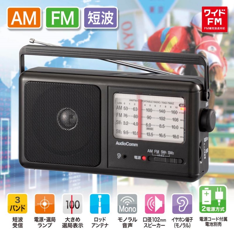 AudioComm ポータブル短波ラジオ AM/FM OHM 07-9819 RAD-T900Z 送料無料