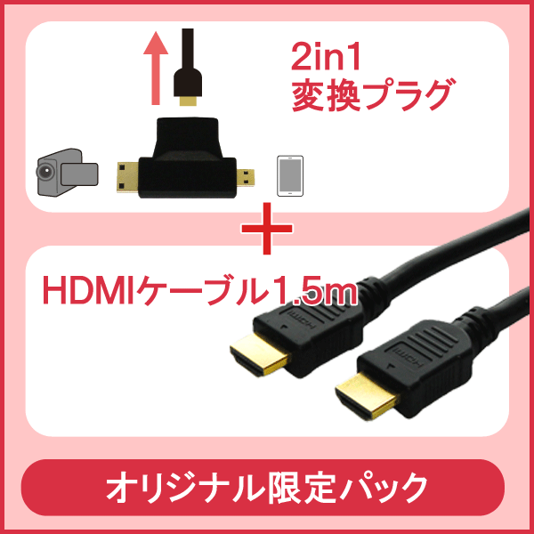 ・当店限定オリジナルパック(HDMIケーブル1.5m+micro・miniHDMI(オス)⇒HDMI(メス)変換アダプタ付属。)