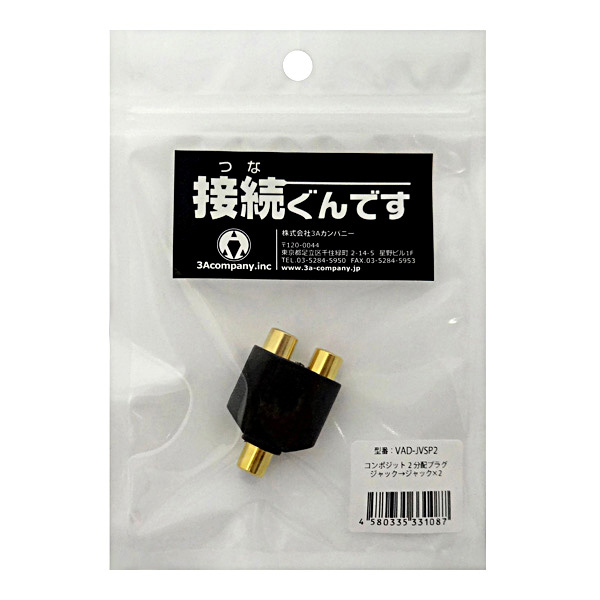 【メール便送料無料】ビデオ分配プラグ メス-メス×2 ビデオ変換アダプタ 3Aカンパニー VAD-JVSP2 【返品保証】