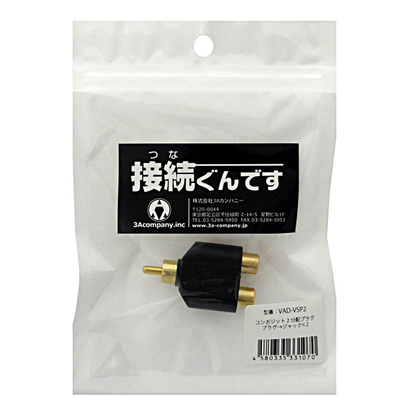 【メール便送料無料】ビデオ分配プラグ オス-メス×2 ビデオ変換アダプタ 3Aカンパニー VAD-VSP2 【返品保証】