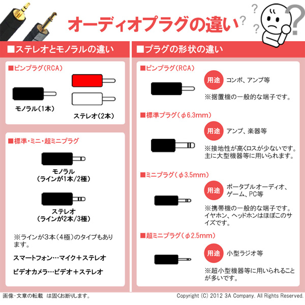 ■端子:φ3.5mm(プラグ)/φ3.5mm×2(ジャック)