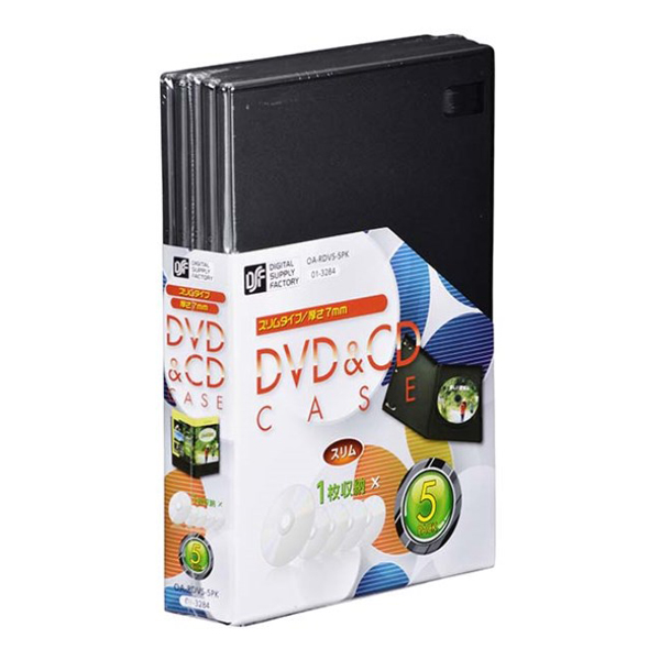 CDケース DVDケース スリム&トールケース 7mm 5枚パック OHM 01-3284 OA-RDVS-5PK