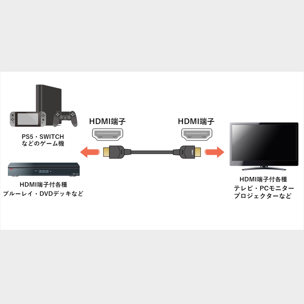 ・HDMIケーブルは、音声と映像のケーブルが一本にまとめられている便利なケーブルですので、幅広く利用されているHDMI機器に楽に接続することができます。