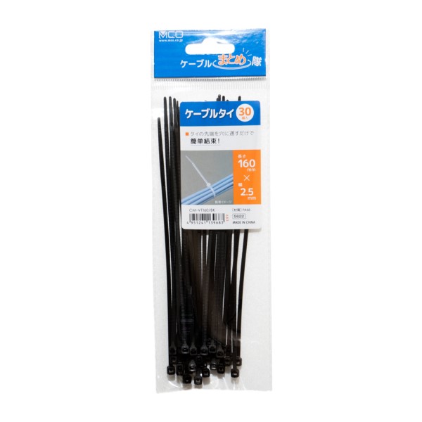 ミヨシ ケーブルタイ 2.5×160mm 30本 ケーブル収納 ブラック CM-VT160BK