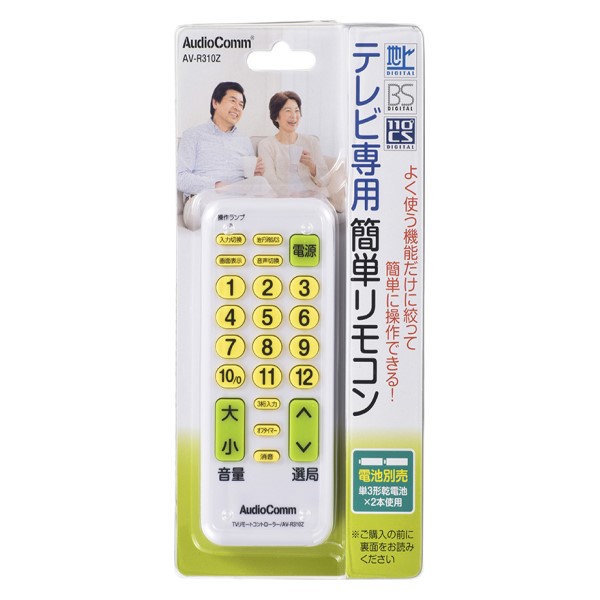 【送料無料】OHM 簡単テレビリモコン ホワイト 07-9812 AV-R310Z AudioComm 地デジ・BS・110°CS対応 TVリモコン 汎用リモコン