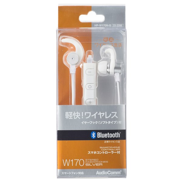 【送料無料】OHM Bluetooth ワイヤレスイヤホン シルバー リモコン付 03-2266 HP-W170N-S AudioComm
