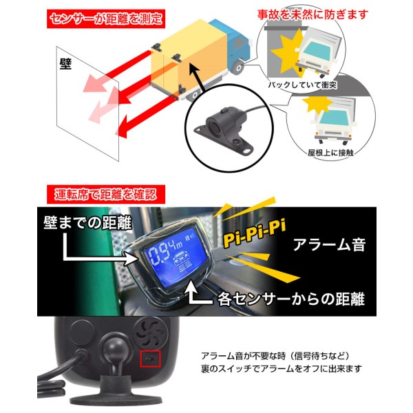 ※本製品は後方の衝突を完全に防止する機器ではなく注意を喚起する商品です。全ての条件において感知・警告を保証するものではございません。