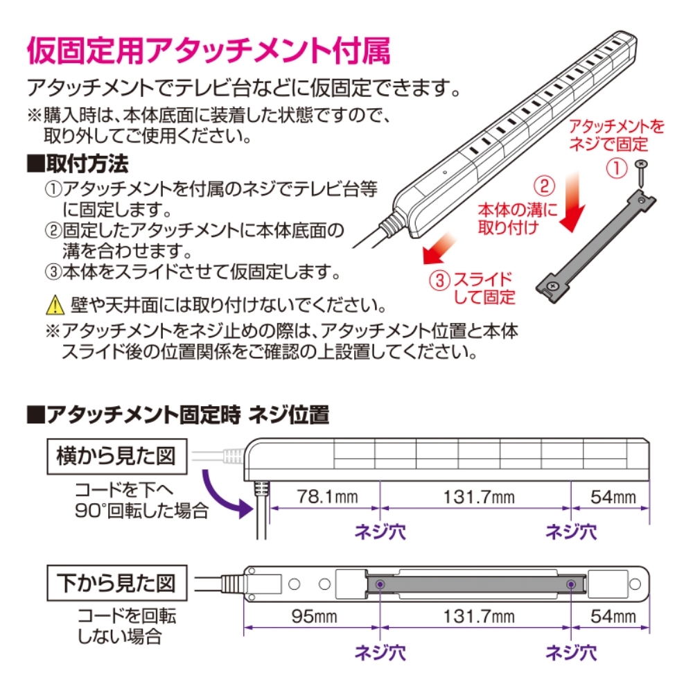 ・仮固定用アタッチメントでテレビ台などに仮固定可能です。