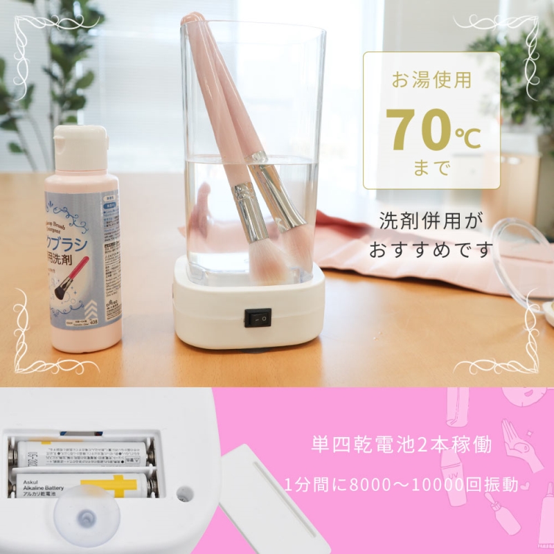 ■面倒なメイクブラシ洗浄がラクに!超振動で汚れをしっかり落とすブラシ洗浄機です。