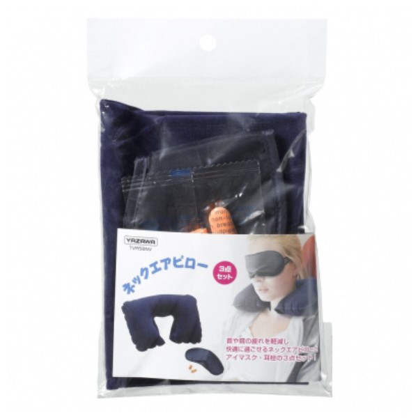 【送料無料】ヤザワ トラベル3点セット ネックピロー・アイマスク・耳栓 ネイビー TVR58NV