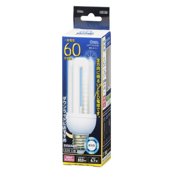 ・ダウンライトにおすすめ、消費電力6.7Wで一般電球60形相当の明るさです。