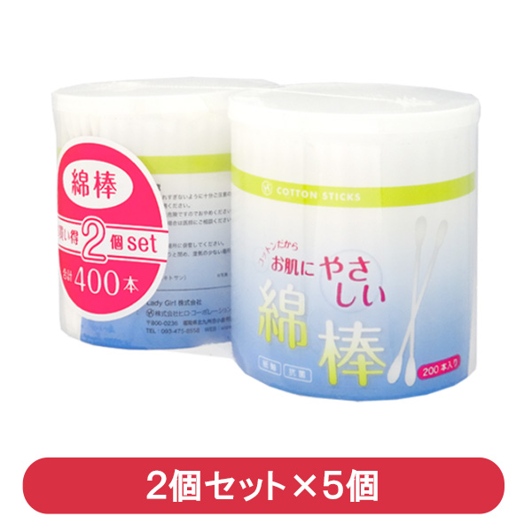 コットン綿棒 2000本(200本×2個セット×5個) 丸ケース入り 抗菌綿棒 26154