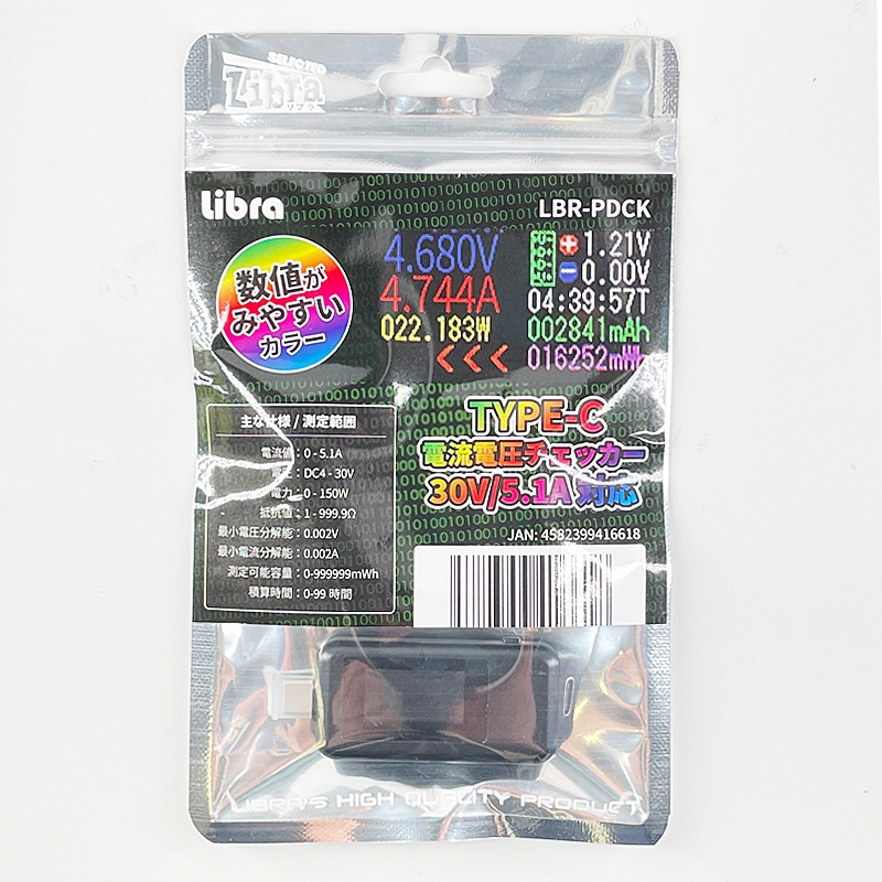 Libra TYPE-C 電流電圧チェッカー 2個セット 30V 5.1A対応 USBチェッカー 計測器 LBR-PDCK-2P 【メール便送料無料】