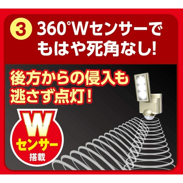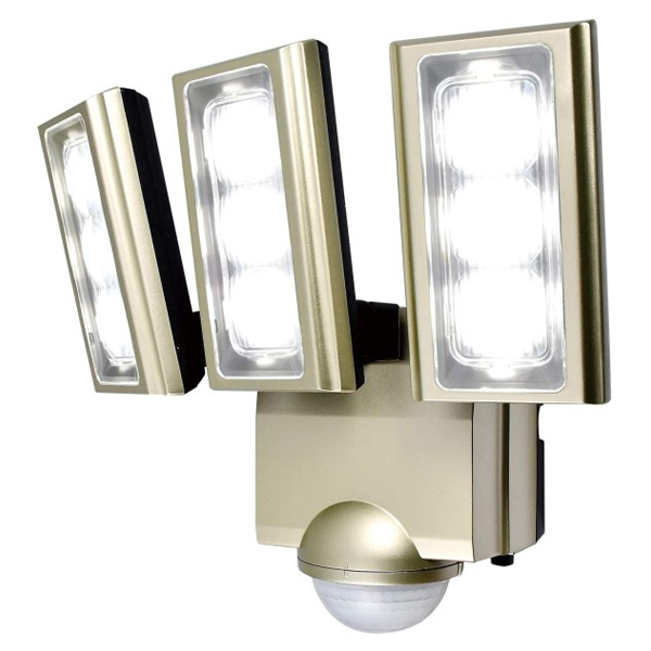 ・センサーが人や車の動きを検知して自動点灯。屋外に設置できる防水仕様(IP45、防噴流形)のLEDセンサーライトです。